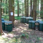 Nach dem Aufbau der Station begrüßte mich der Empfänger mit bisher noch nie dagewesenen atmosphärischen Störungen, Prasseln, Knacken, Krachen … zusätzlich zu dem „Ticken“ der Elektrozäune. Die Signale der Gegenstation waren mit guten Feldstärken zu empfangen, aber das Prasseln der Blitze eines Gewitters hat alles überlagert. Ich musste häufig nochmal nach dem Rufzeichen nachfragen. Zum Glück kennt man die meisten Rufzeichen der „Jäger“ schon, die regelmäßig antworten und so reicht schon ein „halbes“ Rufzeichen aus, um die Gegenstation zu identifizieren.