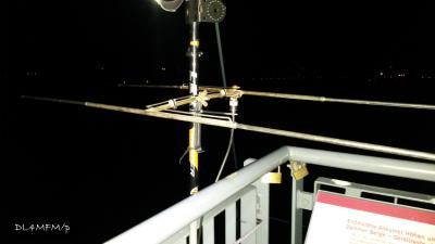 Damit die Station auch 2 Stunden „volle Power“ durchhält, waren im Rucksack 2 x 7Ah Bleigel-Akkus. Zudem beschloss ich, nicht von der Plattform Betrieb zu machen, sondern aus der Wanderhütte am Fuße des Aussichtsturms: 50m Koaxkabel waren im Gepäck. So hat sich alles summiert auf 20 KG. Das habe ich dann auch ganz deutlich beim Aufsteig gespürt und geriet etwas aus dem Zeitplan. Dazu „zickte“ die Kurzwellenendstufe die erste halbe Stunde, so habe ich den Fehler gesucht und parallel mit 5w „CQ CONTEST“ gerufen.