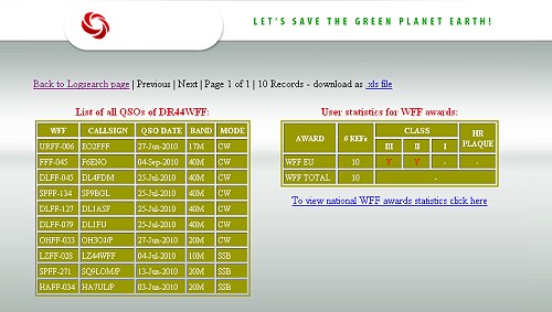 Du kannst ganz normal Log führen. Dann exportierst/konvertierst Du diese Aktivität in das ADIF-Format und schickst es per EMail an Valery (siehe http://wff44.com/en/elogs/ )