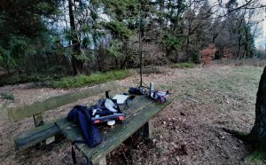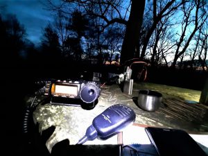 Das obligatorische QSO mit meinem Funkfreund Chris, SM6VTZ, zog sich lange hin: Airplane Scatter war so gut wie unmöglich; denn es sind ja im Augenblick fast keine Flugzeuge unterwegs. Als nach gefühlten 20 Minuten das QSO im Kasten war, war auch schon die Sonne untergegangen und es wurde merklich kälter. Die Station war gegen 22.00 Uhr wieder verpackt und es ging durch den dunklen Wald zurück zum Auto.
