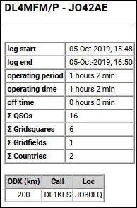 Fast drei Stunden Betrieb, überwiegend in SSB, ein QSO in CW – insgesamt 67 QSOs. Trotz der Hitze waren die Bedingungen sehr ordentlich und die Aktivität hat richtig Spaß gemacht. Das weiteste QSO führte nach England zu G4CLA, ganze 630 km entfernt! Insgesamt kamen 11 Grids und drei Länder ins Log.