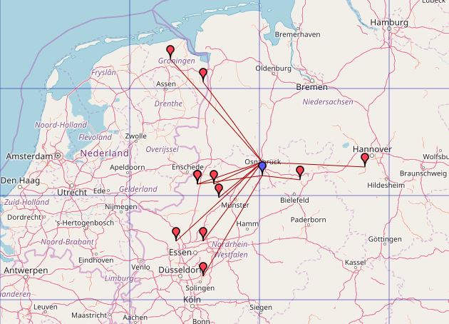 Daten von OpenStreetMap – Veröffentlicht unter ODbL Seine QSO-Map kann man sich hier erstellen. Einfach das ADIF-Log hochladen.