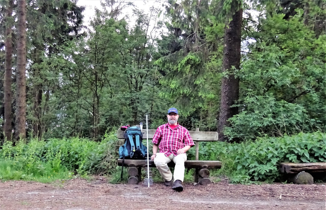 Kurzwellenstation im Wald auf dem Lechtinger Berg Nichts Besonderes, einfach mal raus mit Kurzwelle und Fahrrad zum Lechtinger Berg, ein paar QSOs eingesammelt, mit dem Landwirt diskutiert, ob ich da funken darf, das alles bei schönstem Wetter.