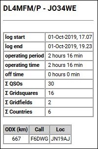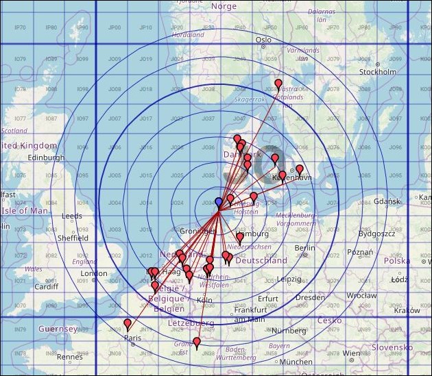 Fast drei Stunden Betrieb, überwiegend in SSB, ein QSO in CW – insgesamt 67 QSOs. Trotz der Hitze waren die Bedingungen sehr ordentlich und die Aktivität hat richtig Spaß gemacht. Das weiteste QSO führte nach England zu G4CLA, ganze 630 km entfernt! Insgesamt kamen 11 Grids und drei Länder ins Log.