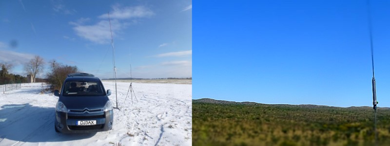 Temperatures were around 8°C (August!) and wx from very sunny to rain. My station was a linked inverted V dipole and a FT-817 transceiver with 5 watts output. All QSOs were made in CW. This weekend I used first time the DXW174 coax cable by DX-Wire. Well, this cable is a little bit fuzzy, hard to handle, because of the massive inner conductor. But it works good (okay – I had in this moment nothing to compare). The GFK mast was by DX-Wire, too. The 10m minimast, pushed together = 67cm, 1.3 kilo weight.