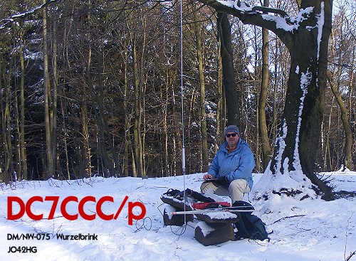Nach der UKW-Aktivität habe ich noch die MP-1 mit neuem Teleskopaufsatz (3m lange MFJ-1954) neben dem Aussichtsturm aufgebaut und auf 40m ein paar QSO gemacht. 25 QSO in einer Viertelstunde waren erfolgreich. Allerdings wurden meine Füße immer eisiger und ich nutzte die erste Pause, wo nach dem CQ-Ruf keine Station mehr zurückkam, um QRT zu machen.