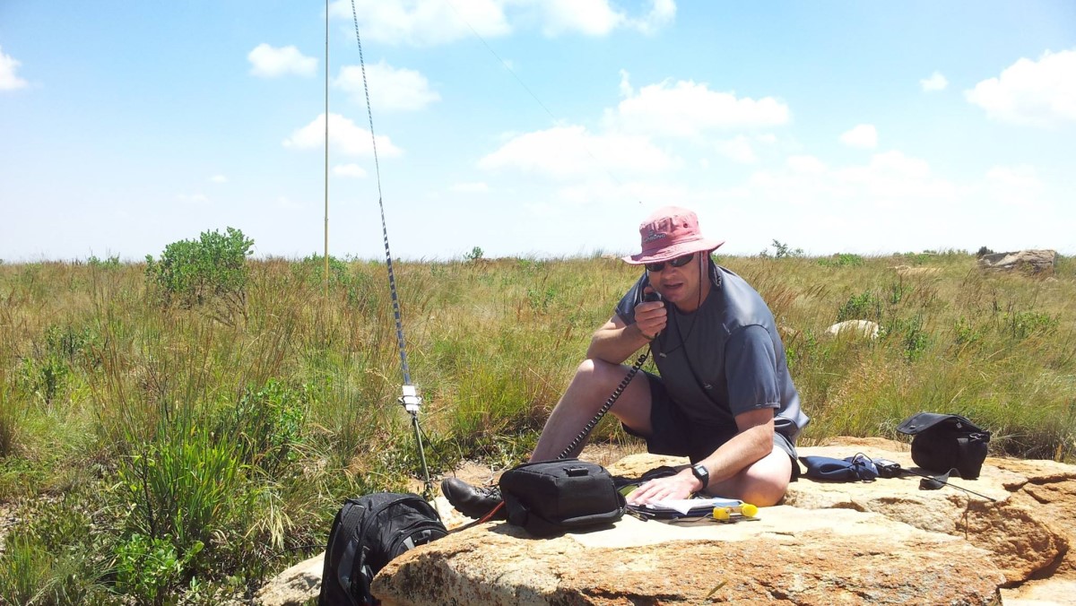 meldete sich noch OM Abraham mit dem exotischen Rufzeichen 9Q5/HJ1NGE aus dem Kongo. Noch ein paar QSO und ich hatte den Berg qualifiziert und habe mich dann zu Eddie und Andries gesellt um zu sehen, wie sie den Funkverkehr abwickeln.