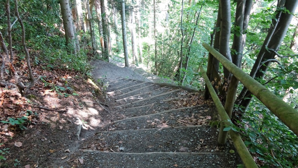 Dann folgt man einfach dem Wanderweg, der auf Liechtensteiner Seite zwei Möglichkeiten bietet, einmal quer durch den Wald oder über den „Felsbandweg“. Für den Hinweg habe ich mich für den Felsbandweg entschlossen.