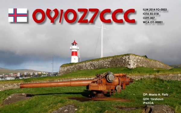 After my first ILLW 2013 at the „Altes Oberfeuer Lemwerder“ near Bremen I made some QSO from Skansin Lighthouse in Tórshavn, Faroe Islands. At this location I had several references: ILLW FO0003 for the lighthouse, WCA OY00001 for the Fortress, OZFF-007 for WWFF, IOTA EU-018 for the Island and OY Faroe Islands for DXCC 🙂 .
