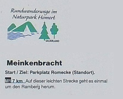 The parking site for hikers „Romecke“ is located south of Meinkenbracht (Sundern). From here starts the circular route „M1“: it goes once around the Ramberg. At the end of the paved road, the trail turns right, but you want to the summit, you have to walk left and just always follow this path until it does not go higher.