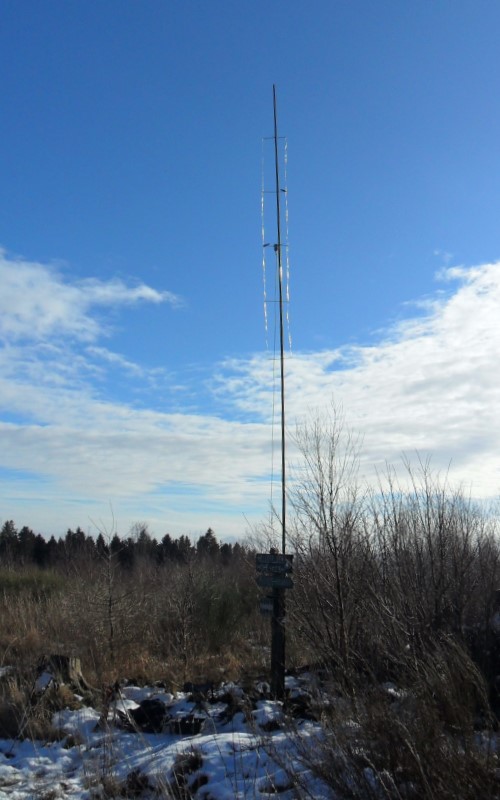 Der Aufstieg dauerte schweißtreibende 1,5 Stunden. Auf der Bergkuppe kamen dann aber schnell 48 QSO ins Log und als es heftig anfing zu Schneien, habe ich qrt gemacht. Der Abstieg war dann auch nicht viel einfacher, ich habe versucht über einen Querweg den Rundwanderweg Richtung Parkplatz wieder zu erreichen, dieser Weg endete aber in einem Kyrill-Windbruch. Die Durchquerung nahm viel Anstrengung und Zeit in Anspruch, nach weiteren 1,5 Stunden war ich wieder am Auto. Die Aktivierung am nächsten Tag musste ausfallen …